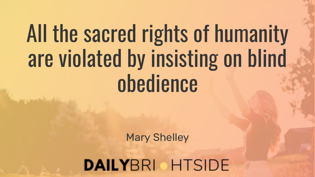 30. “All the sacred rights of humanity are violated by insisting on blind obedience.” ― Mary Shelley
