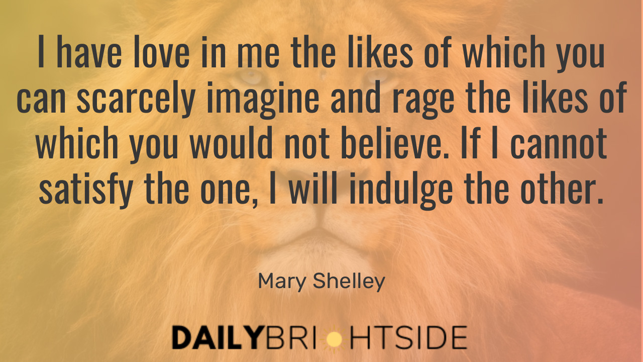 15. “There is love in me the likes of which you’ve never seen. There is rage in me the likes of which should never escape. If I am not satisfied in the one, I will indulge the other.” ― Mary Shelley