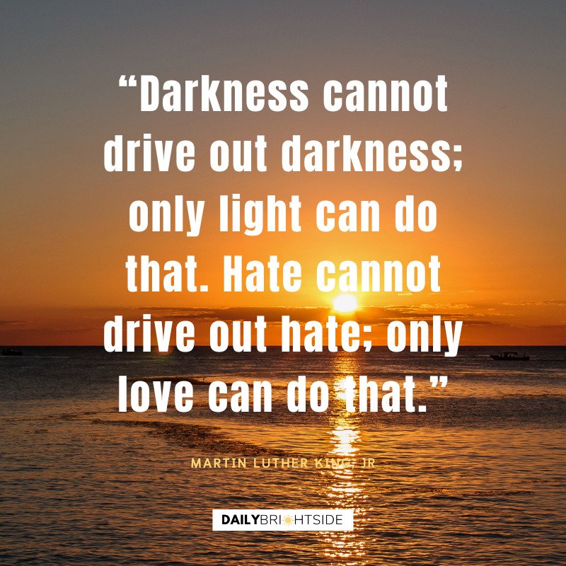 “Darkness cannot drive out darkness; only light can do that. Hate cannot drive out hate; only love can do that.” ~ Martin Luther King, Jr.