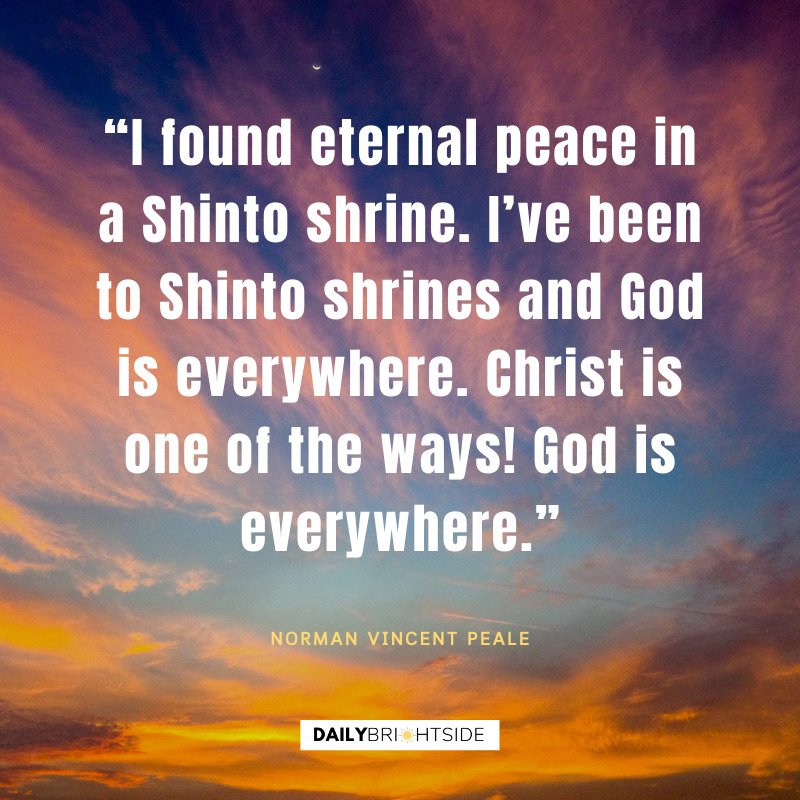 “I found eternal peace in a Shinto shrine. I’ve been to Shinto shrines and God is everywhere. Christ is one of the ways! God is everywhere.” ~ Norman Vincent Peale
