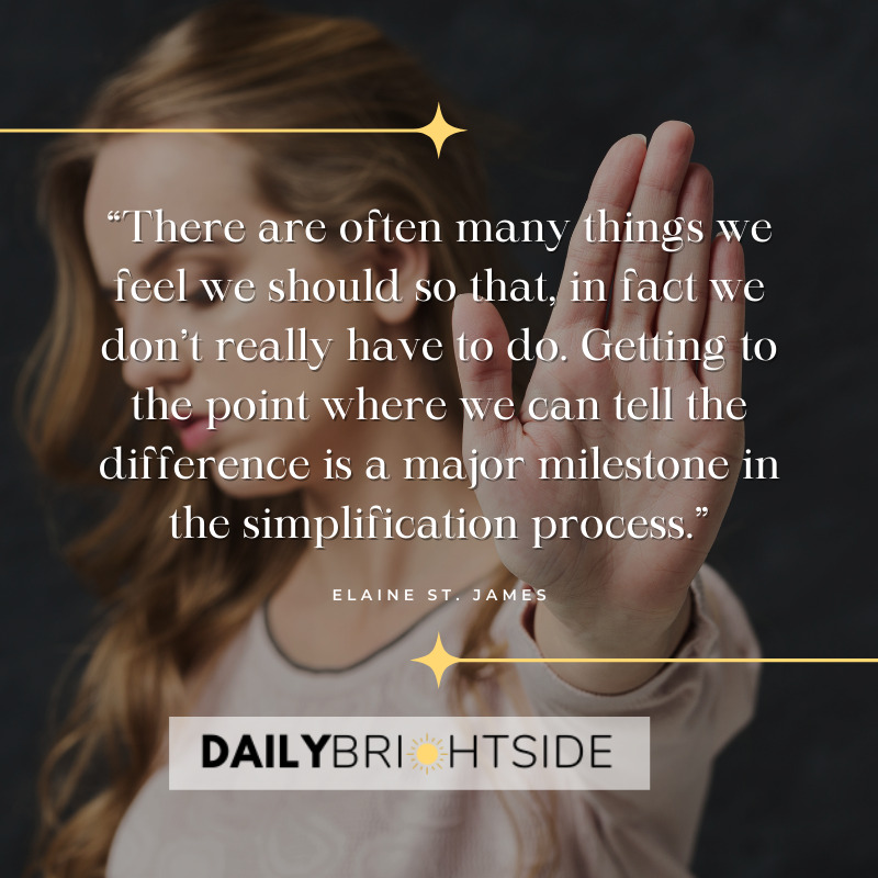 1. “There are often many things we feel we should so that, in fact we don’t really have to do. Getting to the point where we can tell the difference is a major milestone in the simplification process.” – Elaine St. James