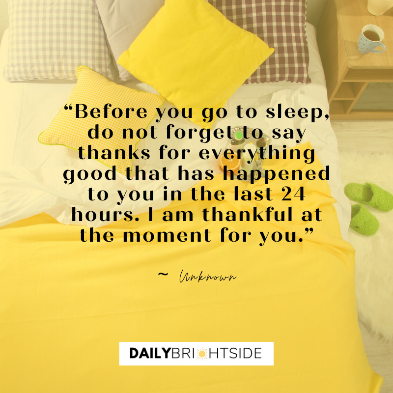 1. “Before you go to sleep, do not forget to say thanks for everything good that has happened to you in the last 24 hours. I am thankful at the moment for you.” – Unknown