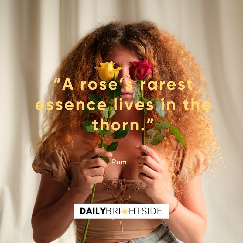 3. “A rose’s rarest essence lives in the thorn.” – Rumi (see more quotes by Rumi)