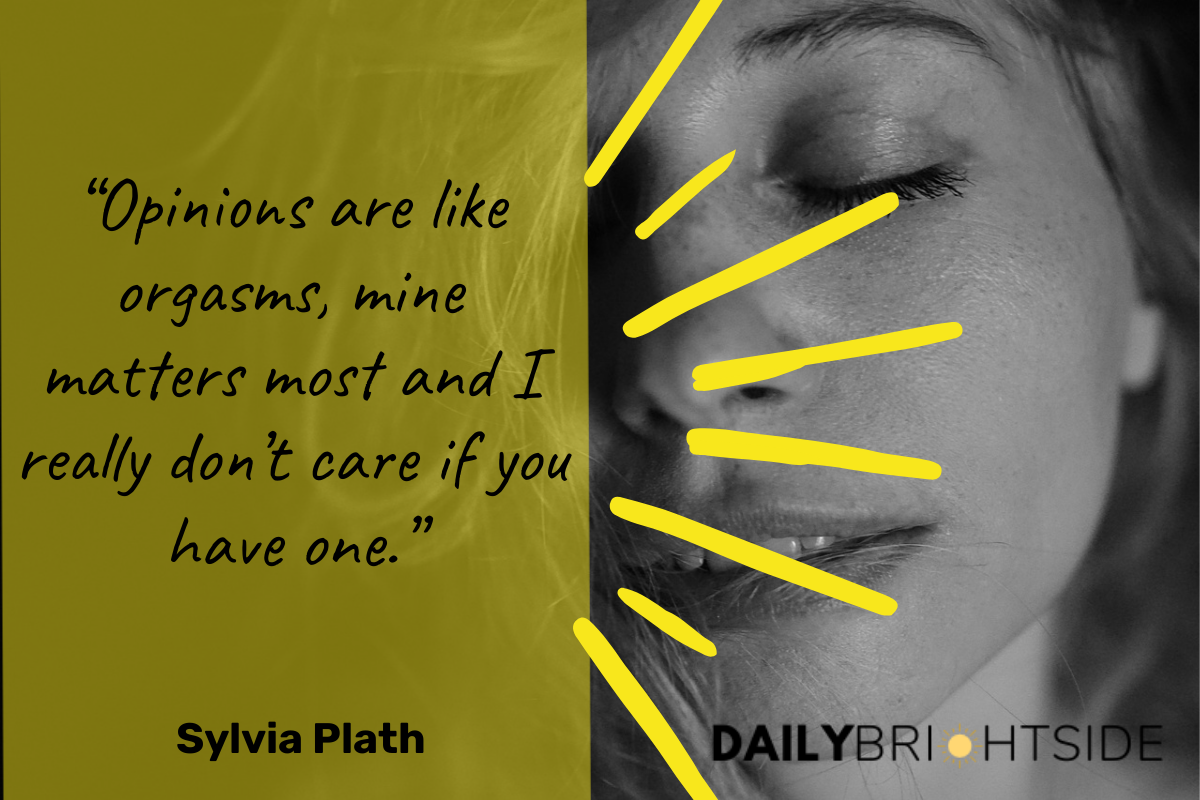 18. “Opinions are like orgasms, mine matters most and I really don’t care if you have one.” Sylvia Plath