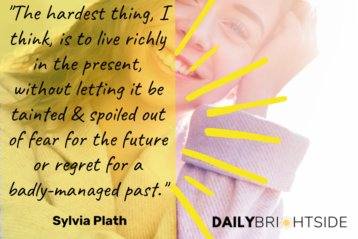 10. “The hardest thing, I think, is to live richly in the present, without letting it be tainted & spoiled out of fear for the future or regret for a badly-managed past.” Sylvia Plath