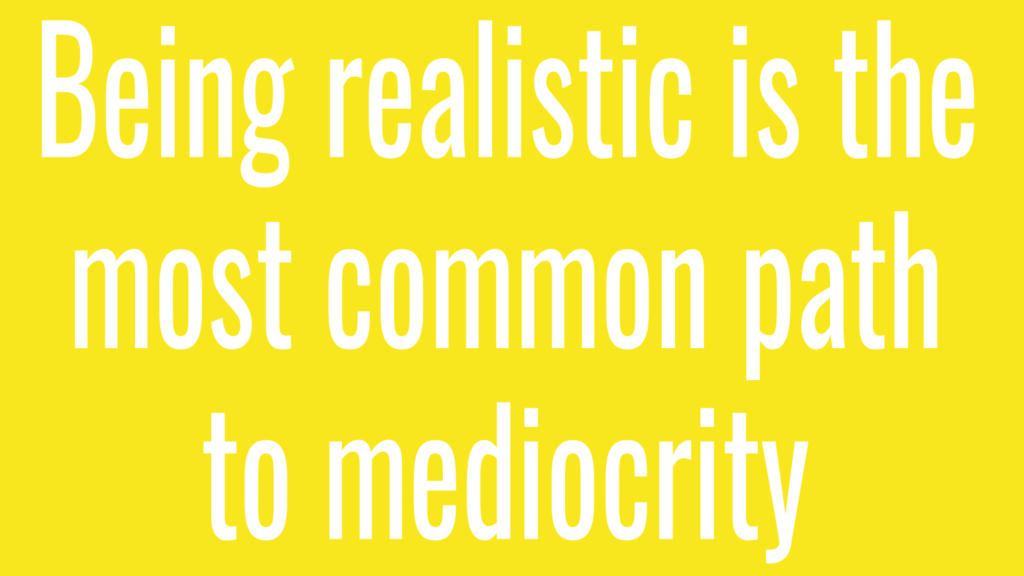 In 1900, you would have thought I was insane if I had told you about an invention that could carry you from one place to another while flying you through the air. You would have advised me to “be realistic.” Thank goodness the Wright brothers disregarded such counsel for the benefit of all people.